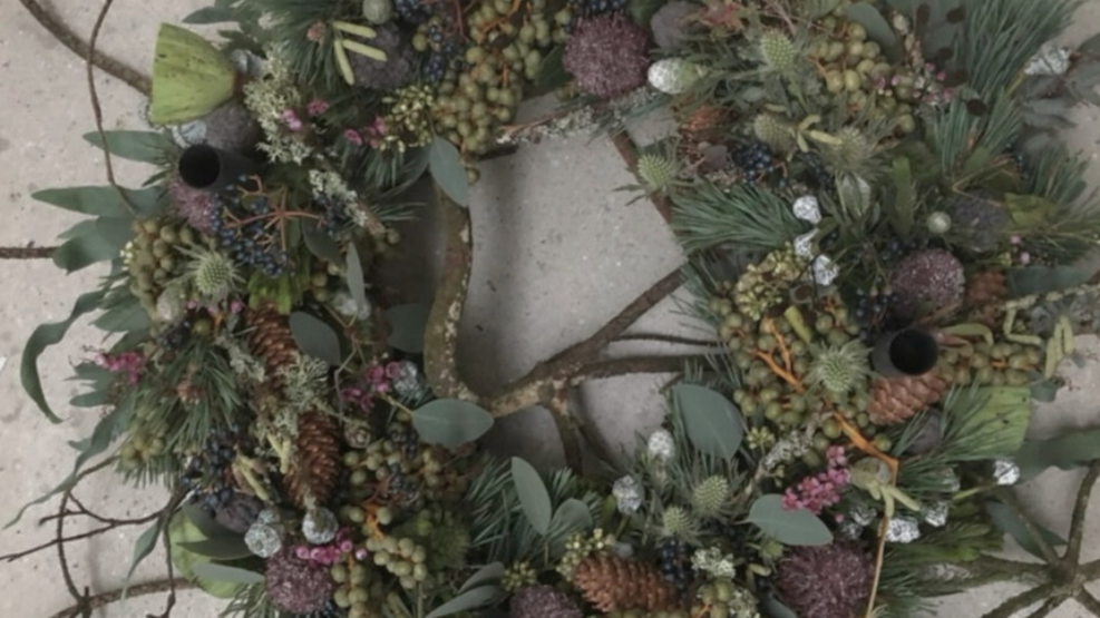 Die Galerie und ihr verschneiter Garten schaffen eine märchenhafte Kulisse mit Lichtern und Naturdeko. Hier spürt man die Weihnachtsfreude in jedem Schritt.